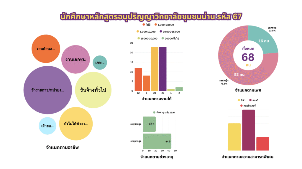 สถิตินักศึกษาระดับอนุปริญญาวิทยาลัยชุมชนน่าน September 18, 2025 By nancc Off สถิตินักศึกษาระดับอนุปริญญาวิทยาลัยชุมชนน่าน Post navigation Previous PostPrevious วิทยาลัยชุมชนน่าน จัดการประชุมคณะกรรมการส่งเสริมกิจการวิทยาลัยชุมชนน่าน ครั้งที่ 3/2568Next PostNext วิทยาลัยชุมชนน่าน ให้การต้อนรับคณะกรรมการสภาสถาบัน ในการจัดการประชุมสัญจร สภาสถาบันวิทยาลัยชุมชน