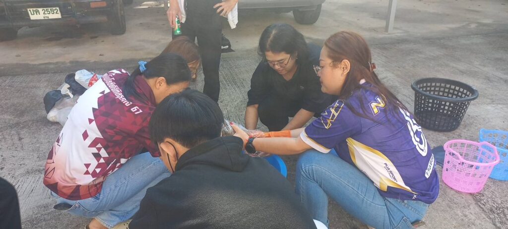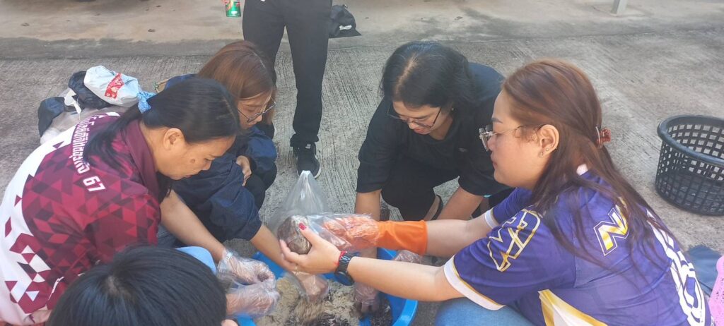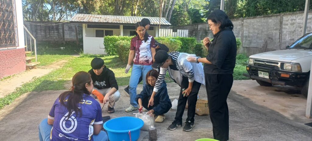วิทยาลัยชุมชนน่าน นำนักศึกษาสาขาวิชาเทคโนโลยีดิจิทัลธุรกิจ เรียนรู้การฝึกอาชีพเพาะเห็ดฟางในตะกร้า รายวิชาชุมชนแห่งความยั่งยืน