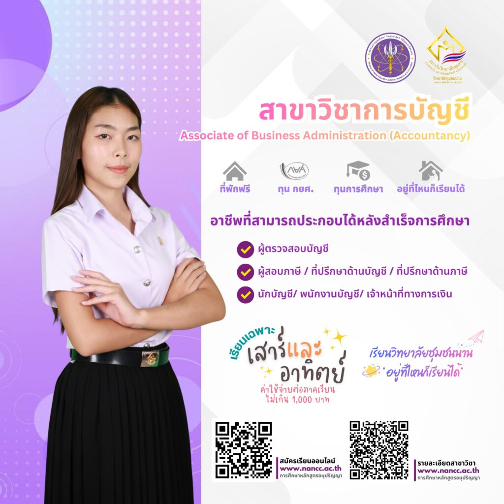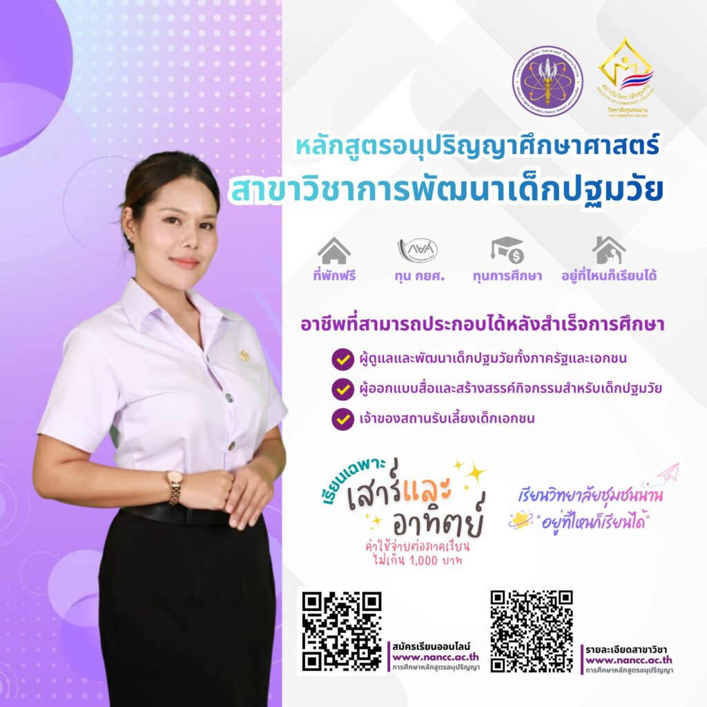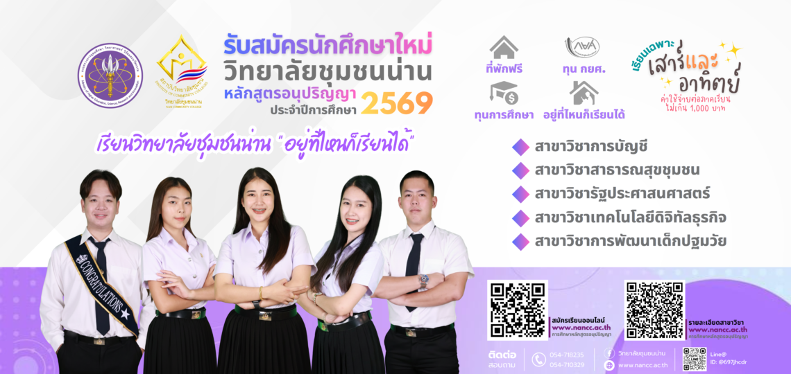วิทยาลัยชุมชนน่านเปิดรับสมัครนักศึกษาใหม่ หลักสูตรอนุปริญญา ประจำปีการศึกษา 2569