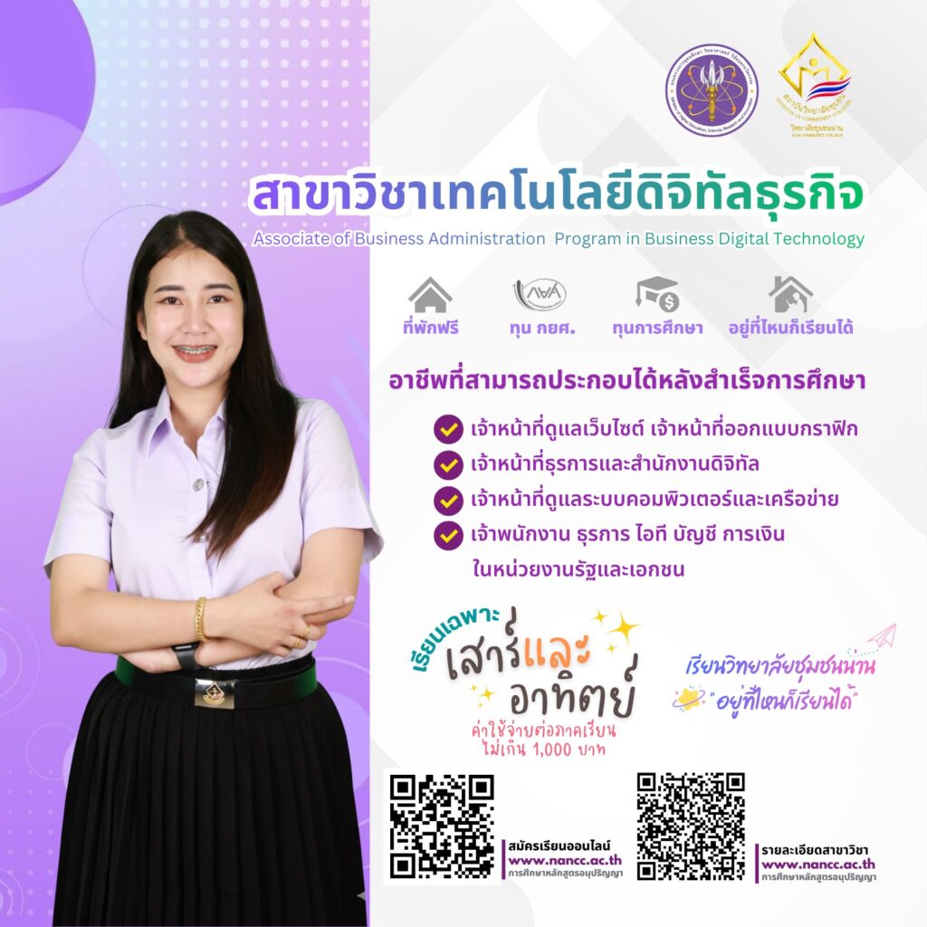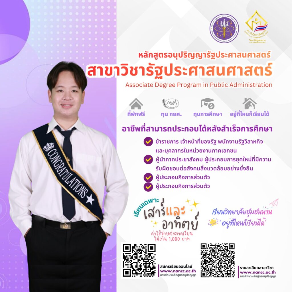 วิทยาลัยชุมชนน่าน เปิดรับสมัครนักศึกษาใหม่ หลักสูตรอนุปริญญา ประจำปีการศึกษา 2569