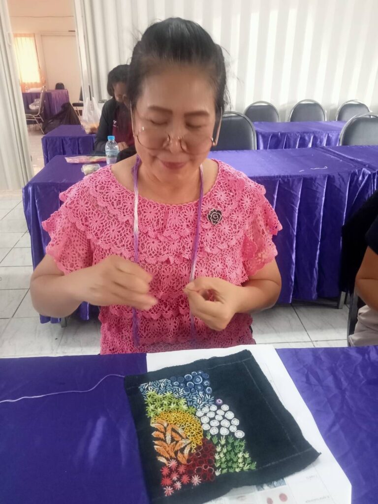 วิทยาลัยชุมชนน่าน ดำเนินการจัดกิจกรรมการปักผ้าด้วยมือ ให้กับกลุ่มเป้าหมายวิสาหกิจชุมชนกลุ่มผ้าทอตำบลส้าน อำเภอเวียงสา จังหวัดน่าน