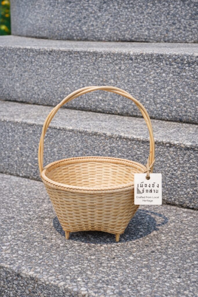 ผลิตภัณฑ์ ตระกร้า(กระเช้า) จากภูมิปัญญาผู้สูงอายุในการสาน “ซ้าฮวด” สู่ “ตระกร้าร้อยรักจักสาน” สำหรับจัดทำกระเช้าของฝาก ของที่ระลึก