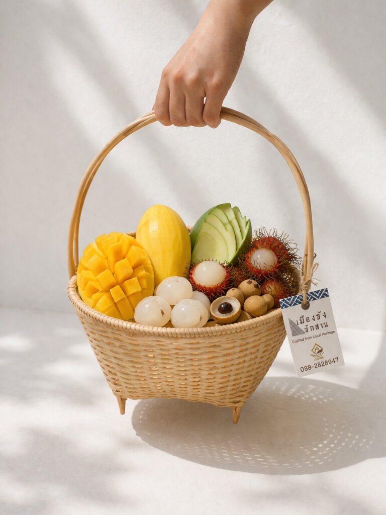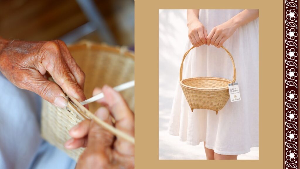 สู่ “ตระกร้าร้อยรักจักสาน” สำหรับจัดทำกระเช้าของฝาก ของที่ระลึก หรือจะหิ้วสวยๆ ไปทำบุญ ใส่ของเบ็ดเตล็ดก็ได้