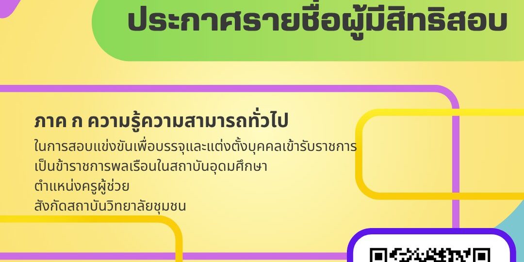 ประกาศสถาบันวิทยาลัยชุมชน เรื่อง ประกาศรายชื่อผู้มีสิทธิสอบ ภาค ก ความรู้ความสามารถทั่วไป ตำแหน่งครูผู้ช่วย สังกัดสถาบันวิทยาลัยชุมชน