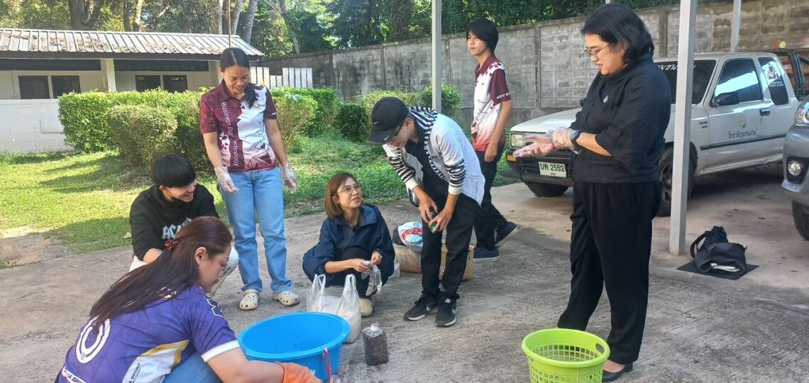 วันที่ 15 พฤศจิกายน 2568 ดร.พิมลพรรณ สกิดรัมย์ ผู้อำนวยการวิทยาลัยชุมชนน่าน ร่วมกับ อ.ปิยะพล ทวีวรรณ นำนักศึกษาสาขาวิชาเทคโนโลยีดิจิทัลธุรกิจ เรียนรู้การฝึกอาชีพเพาะเห็ดฟางในตะกร้า รายวิชาชุมชนแห่งความยั่งยืน
