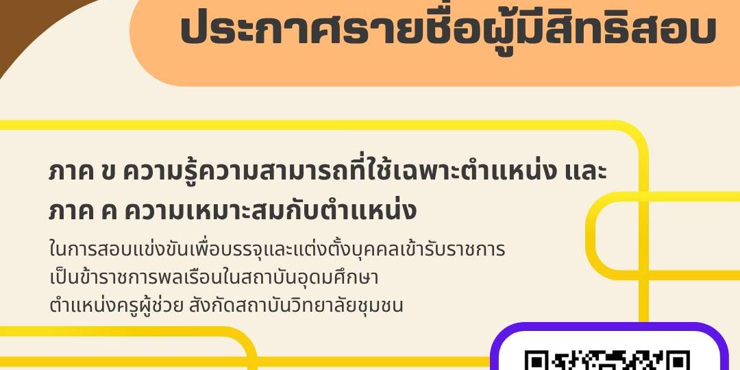 ประกาศสถาบันวิทยาลัยชุมชน เรื่อง รายชื่อผู้มีสิทธิ์สอบ ภาค ข ความรู้ความสามารถที่ใช้เฉพาะตำแหน่ง และภาค ค ความเหมาะสมกับตำแหน่ง ในการสอบแข่งขันเพื่อบรรจุและแต่งตั้งบุคคลเข้ารับราชการเป็นข้าราชการพลเรือนในสถาบันอุดมศึกษา ตำแหน่งครูผู้ช่วย สังกัดสถาบันวิทยาลัยชุมชน